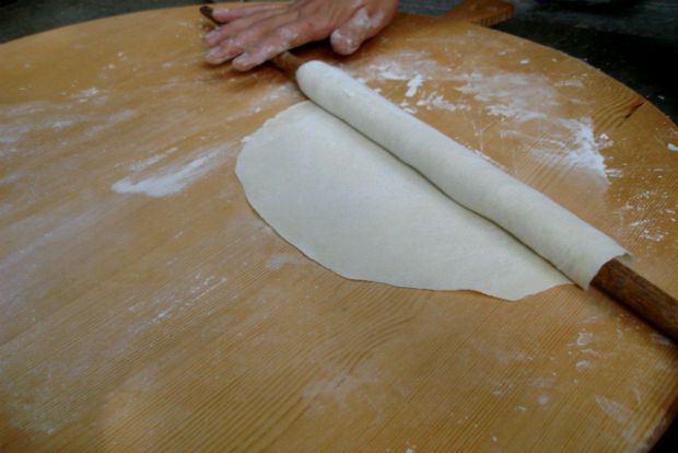Θυμάμαι τη μακαρίτισσα Λούλα Μπάιμπα, από το Βόλο, τη θεία του Κώστα, έμπειρη και εξαιρετική μαγείρισα, που άνοιγε φύλλο εξαιρετικό. Ήταν έξω φρενών με τις χοντρές λαμαρίνες που έρχονται μαζί με τις ηλεκτρικές κουζίνες. Γι’ αυτήν, πολύ σωστά, το ιδανικό ταψί για πίτα είναι το λεπτότατο χάλκινο σινί που μόλις βγει από το φούρνο κρυώνει γρήγορα,κι έτσι τα φύλλα δε μουλιάζουν από τους αχνούς της γέμισης.
