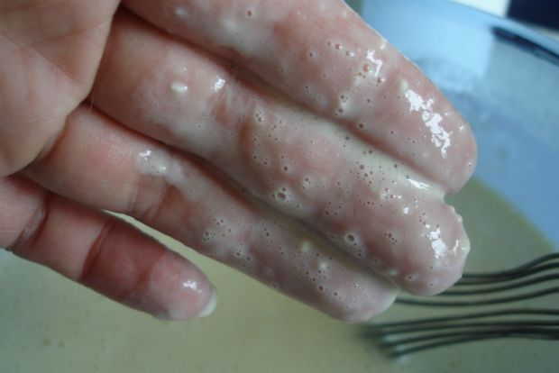 Ο χυλός θα πρέπει να μοιάζει με ελαφρύ κουρκούτι – η Justine κάνει την εξής δοκιμή: πλένει καλά το χέρι της και βουτάει μέσα στον χυλό δύο δάχτυλα. Τραβώντας τα έξω θα πρέπει το μίγμα να τα καλύπτει μεν αλλά να μοιάζει διάφανο, να φαίνεται το δέρμα από κάτω και να μη στέκεται πηχτό αλλά να ρέει. Αν παραείναι αραιό, συμπληρώνει αλεύρι δοκιμάζοντας, αν παραείναι πηχτό προσθέτει ελέγχοντας μία με δύο κουταλιές της σούπας νερό. Μόλις ο χυλός είναι έτοιμος, τον αφήνουμε για μία ώρα σε ζεστό σημείο, σκεπασμένο με μια πετσέτα. Αν θέλουμε να φτιάξουμε τις κρέπες γρήγορα, με το πρωινό ξύπνημα, τον ετοιμάζουμε αποβραδίς και καλυμμένο καλά με μεμβράνη τον αφήνουμε στο ψυγείο. Διατηρείται άψογα για μια νύχτα.