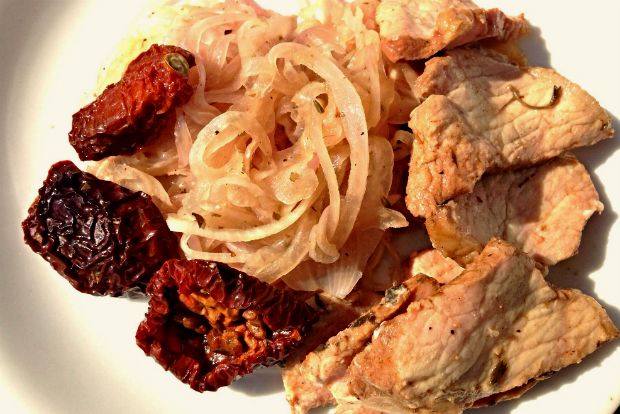 Απάκι με κρεμμύδια και λιαστή ντομάτα