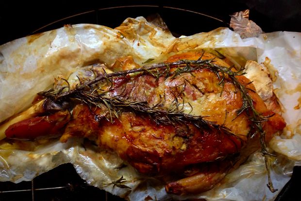 Βάζουμε το μπουτάκι μας σε μια μεγάλη γάστρα και το ψήνουμε αρχικά στους 250 βαθμούς σε προθερμασμένο φούρνο για ένα μισάωρο και μετά χαμηλώνουμε στους 160 βαθμούς για δύο με δυόμιση ώρες. Συνοδεύεται άριστα με πατάτες φούρνου και μια πράσινη σαλάτα.