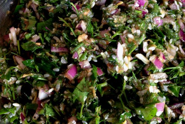 Η συνταγή που ετοίμασα είναι από τη γιαγιά μου και ομολογώ ότι έχω να φάω λαπαθοντολμάδες από τότε. Τον χειμώνα γενικότερα χρησιμοποιούμε λάχανο για ντολμάδες, αφού τα αμπελόφυλλα δεν κάνουν την εμφάνισή τους πριν από την άνοιξη και είναι σημαντικό να χρησιμοποιούμε κάθε πράγμα στον καιρό του. Τα άφθονα και διαφορετικά μυρωδικά παίζουν καταλυτικό ρόλο στο συγκεκριμένο φαγητό, γι’ αυτό θα μοιραστώ μαζί σας ένα μυστικό της μητέρας μου κάθε φορά που κάνετε ντολμάδες. Όταν έχετε ψιλοκόψει τα μυρωδικά, πριν τα προσθέσετε στη γέμιση, βάλτε λίγο αλάτι και τρίψτε τα καλά για να βγουν τα αρώματά τους. Προς Θεού, δεν πετάμε τα κοτσάνια διότι θα τα χρησιμοποιήσουμε σαν «βάση» στην κατσαρόλα για να μη μας κολλήσουν οι λαπαθοντολμάδες.
