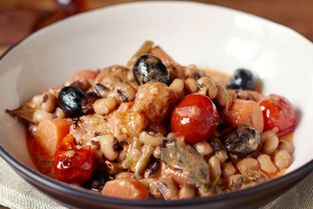 Μέχρι κι ο καιρός σήμερα με τα ναζάκια του και τις σταγόνες με οδηγεί σε μαγειρέματα λιγότερο εαρινά. Αλλά κι ο ήλιος να ‘ταν εδώ και να ‘λειπε η βροχούλα, εσχάτως προσπαθώ να ανακτήσω όλον τον χαμένο χρόνο στη σχέση μου με τα όσπρια. Ένα από τα καθημερινά βασανάκια της παιδικής ηλικίας (ποιο μικρό παιδί συμπαθεί φασόλια και ρεβύθια;) προϊόντος του πανδαμάτορος (λέμε τώρα) εξελίσσεται με μαγικό τρόπο σε πιάτο που το αναζητάς. Νά ‘ναι η γήινη γεύση του; Νά ‘ναι ότι μάθαμε άλλους τρόπους να τα ετοιμάζουμε πέρα από τους καθιερωμένους, οικογενειακούς; Τα μαυρομάτικα φασόλια έχουν και μια επιπλέον τσαχπινιά, ένεκα των τσακίρικων οφθαλμών τους.