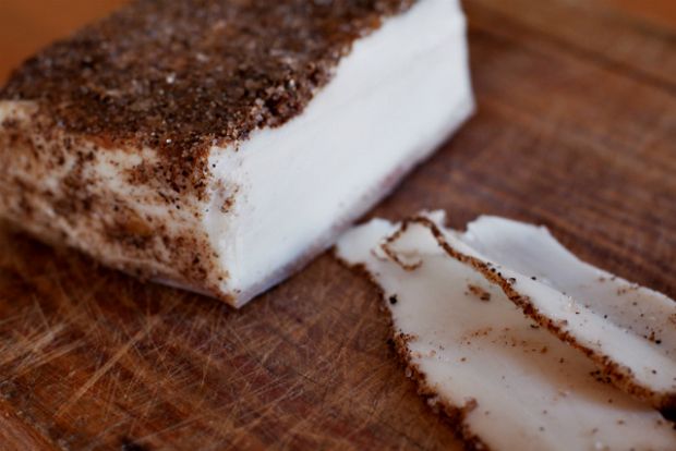 Αντίθετα με μας οι γείτονές μας οι Ιταλοί δεν αποφασίσαν εύκολα να εγκαταλείψουν τις παλιές τους δοκιμασμένες συνήθειες και ποτέ δεν έπαψαν να χρησιμοποιούν το αγαπημένο τους strutto. Και δεν το χρησιμοποιούν μόνο σαν λίπος σε διάφορα φαγητά και γλυκά, αλλά εκείνο από τη ράχη του χοίρου το παστώνουν με αλάτι, καρυκεύματα και μυρωδικά και το αφήνουν να τραβήξει και πάρει γεύση σε μαρμαρένιες ‘μπανιέρες.’ Το Lardo di Colonnata είναι μια ακόμα από τις λιχουδιές με ονομασία προέλευσης που τρώγεται, όπως και τα άλλα εκλεκτά ιταλικά αλλαντικά, σε λεπτότατες φέτες, συχνά αρτυσμένο με δυο-τρεις σταγόνες αυθεντικό βαλσαμικό ξύδι.