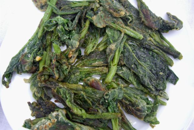 Το περί ου ο λόγος πιάτο ήταν ένα χοντρό βλαστάρι με φύλλα, που τηγανιζόταν αλευρωμένο και κάποιες φορές σε στραπατσάδα με αυγά. Θέλοντας να μάθω περισσότερα, μου έδειξαν το φυτό, που φύτρωνε αυτοφυές σε ομάδες στα χωράφια. Σύντομα ανακάλυψα με χαρά, ότι μπροστά από τον ξενώνα είχα ολόκληρη φυτεία. Όταν ήταν τρυφερό, τσιμπούσαν τις κορυφές, τις έβραζαν και μετά αλευρωμένες τις τηγάνιζαν, όπως τα ψάρια, και οι μερακλήδες πρόσθεταν στο τέλος και 2-3 αυγά. Το θετικό ήταν ότι το πιάτο τρωγόταν και ζεστό και κρύο.